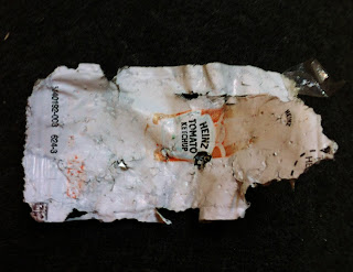 - Nonfood/unknown plastics: 6 (3 scraps <1", tieback, rubberband, carabiner?)